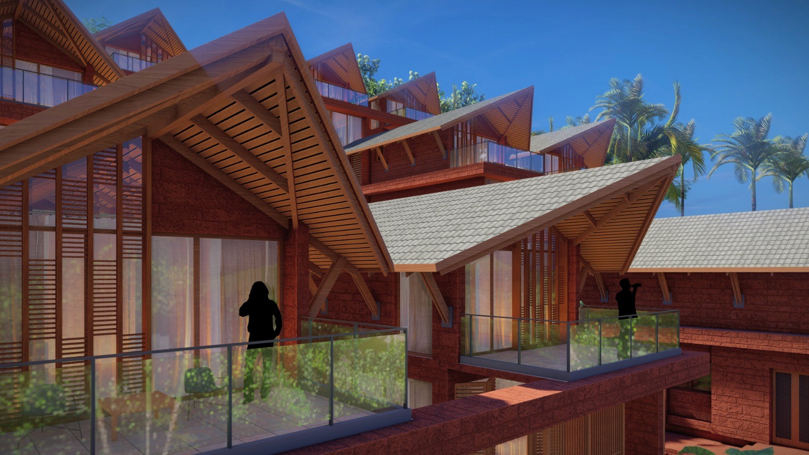 The Seven Villas x Sangolda is a boutique residential development of seven luxury villas nestled into the sloping terrain of Goa. Designed as a low-density cluster, the villas follow the natural contours of the hillside and are arranged in two staggered rows — four on one side and three on the other — stepping down gracefully with the slope. Each villa embraces a U-shaped courtyard typology, framing a private pool at its heart, while opening outward to panoramic views of the surrounding valley. The project redefines tropical hillside living by blending architectural clarity with sensitivity to climate, terrain, and landscape.